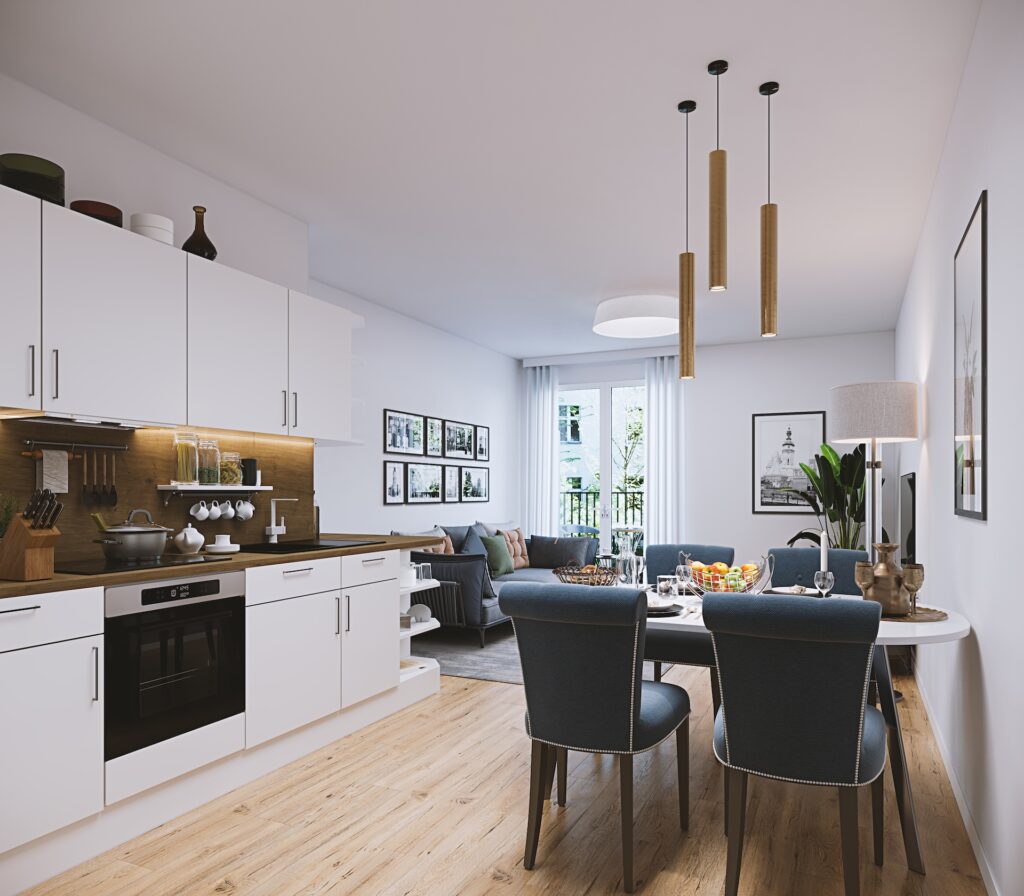 Im neu entstandenen Stadtquartier Seitenpfaden entwickelte kopfarchitekten ein Wohncluster bestehend aus drei freistehenden Kuben. Die Gebäude sind über eine gemeinsame Tiefgarage miteinander verbunden und gruppieren sich um einen zentralen, großzügig begrünten Innenhof. Die klare architektonische Setzung schafft hochwertige, ruhige Wohnräume mit gemeinschaftlich nutzbarem Außenbereich und trägt zur strukturellen Qualität des Quartiers bei.